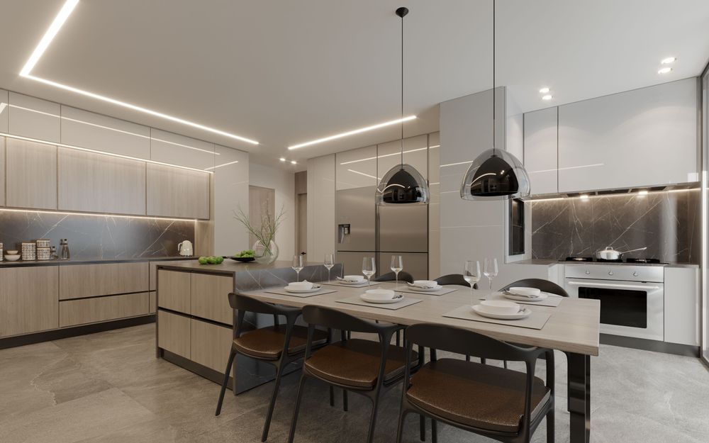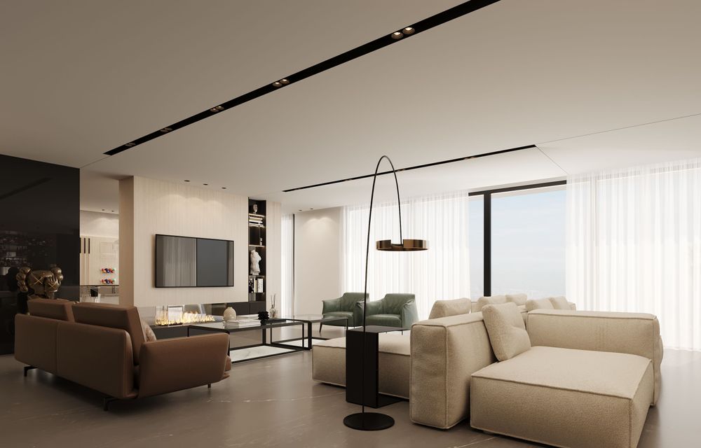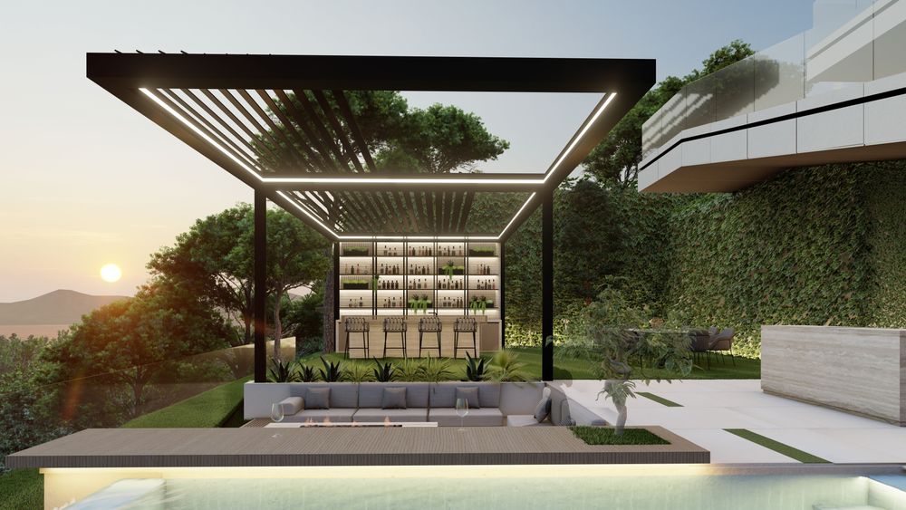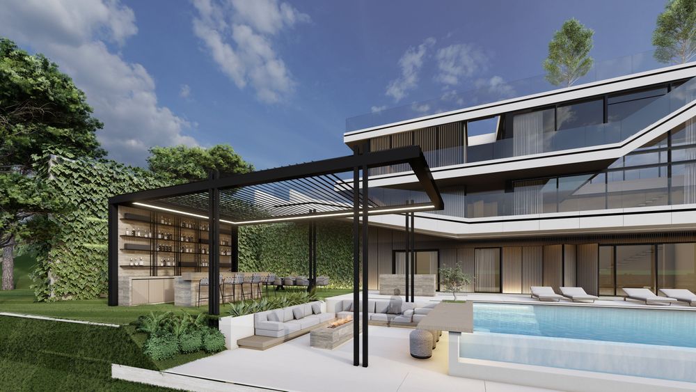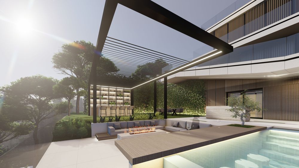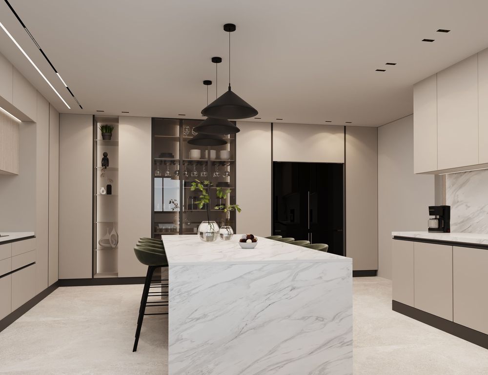 This luxurious triplex villa, nestled in the mountains, offers a serene escape with breathtaking views. Upon entering, the enchanting lobby leads you down to a double-height salon, highlighted by a stunning dove-white marble chimney and a striking floating staircase. The villa features five master bedrooms, spacious kitchens, and a captivating basement that entertains guests with a designer billiard table, seating area, and bar, all overlooking the infinity pool.