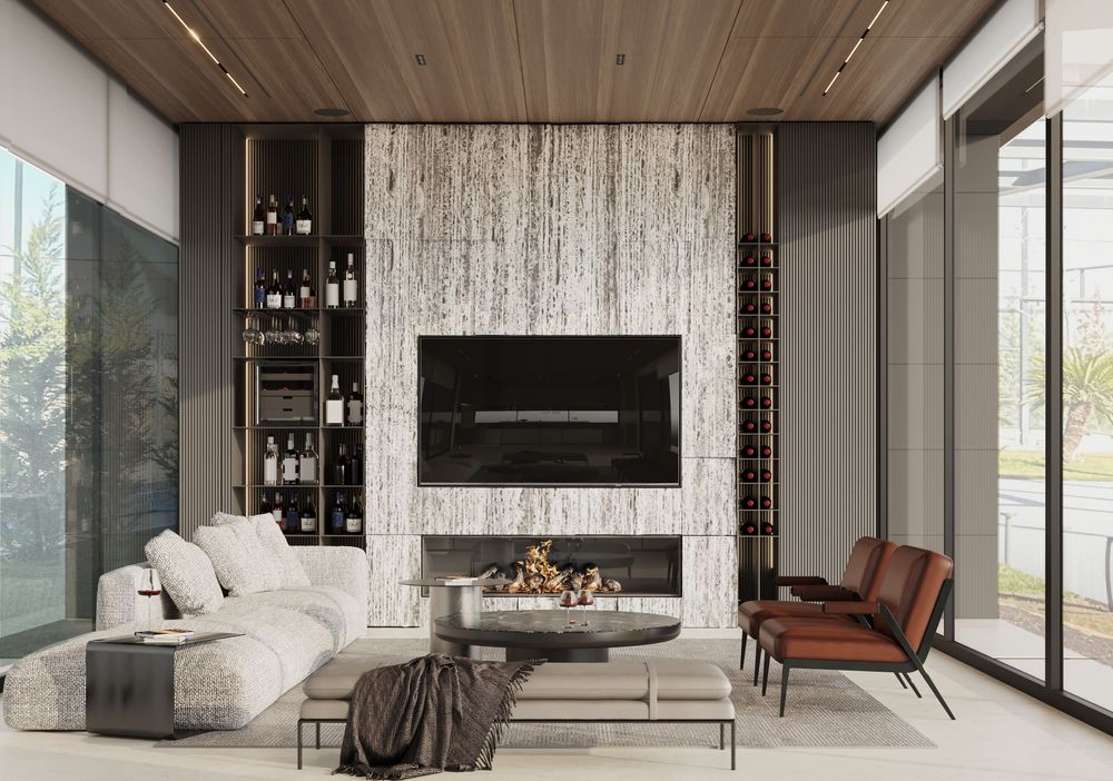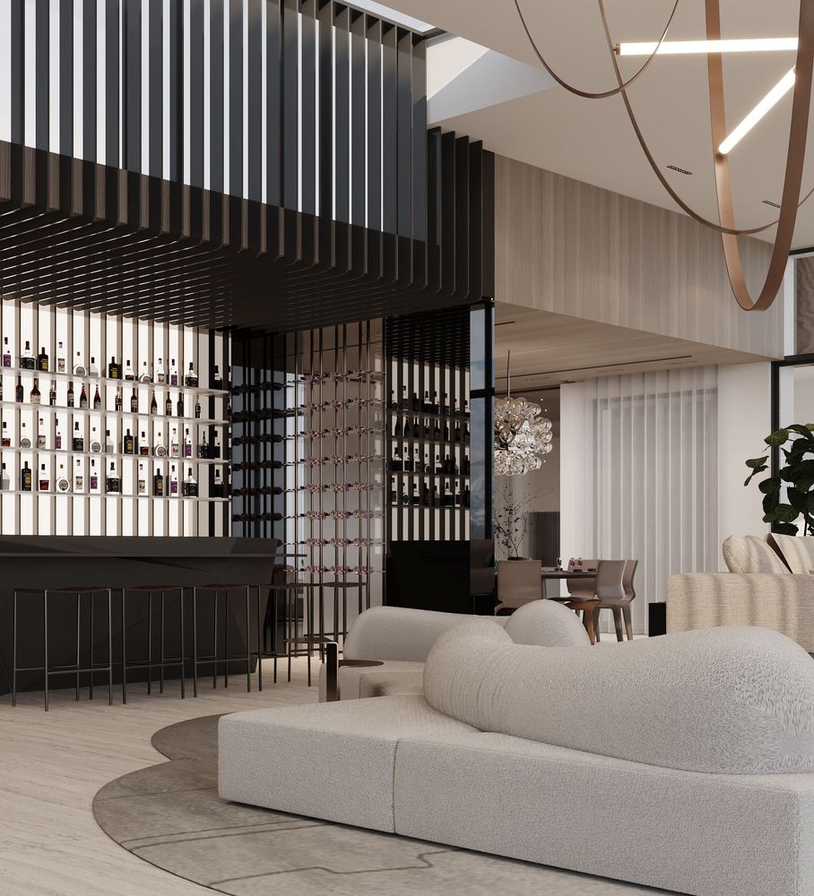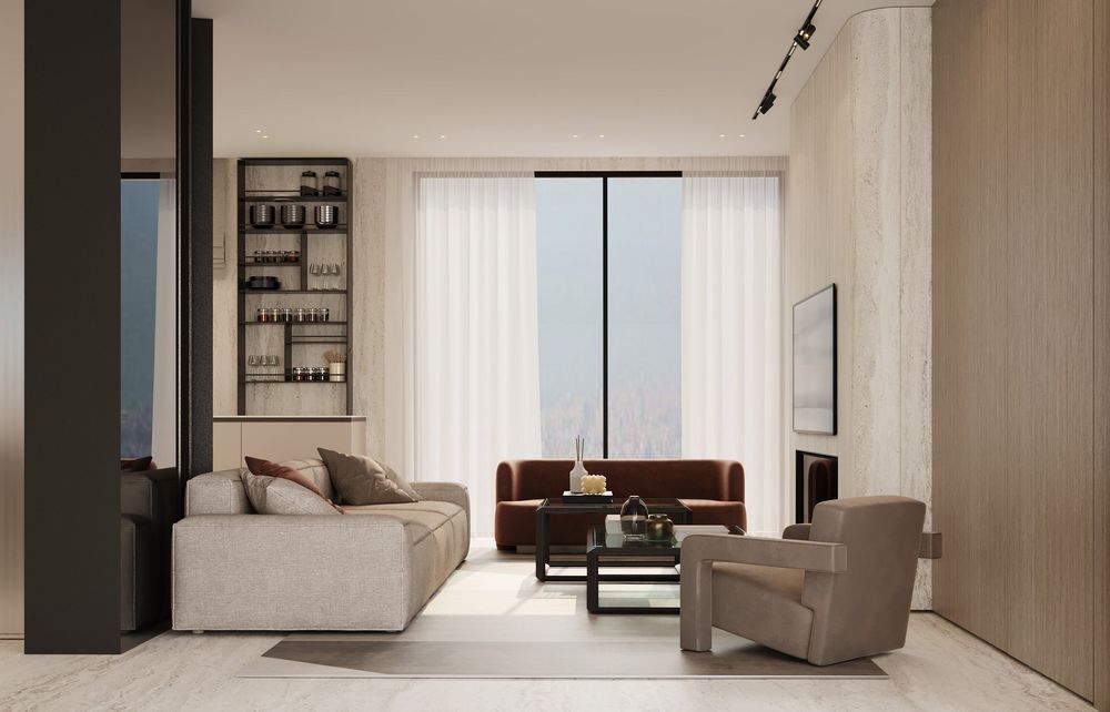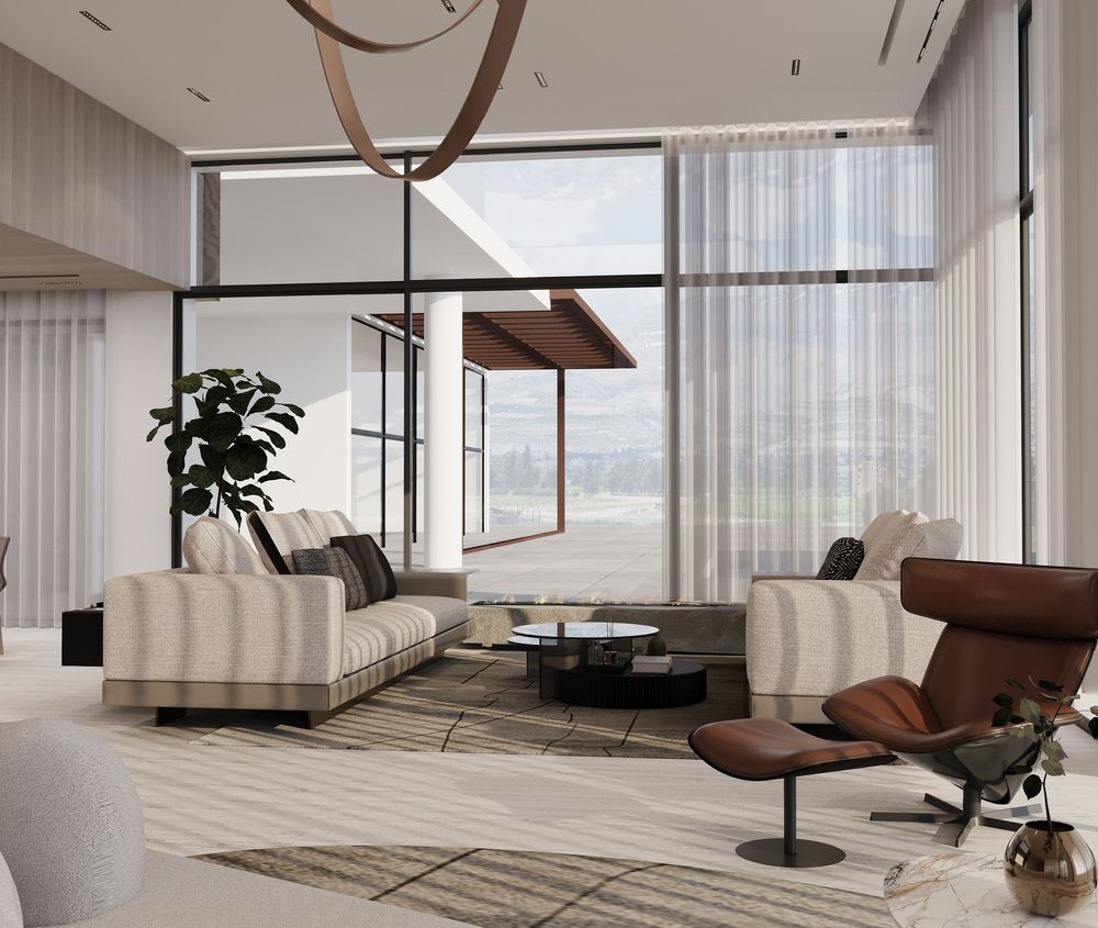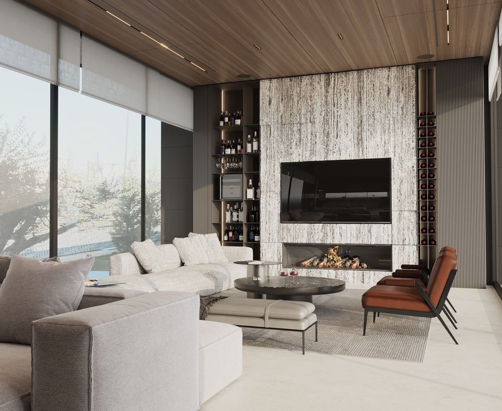 This tranquil retreat, spanning 36,000 square meters in a lush green valley, offers an ideal escape. The property features a main villa, a guest house, a private chalet, and a charming farm, all seamlessly connected, with a large pool as the central element. Inside the villa, a double-height open space impresses with a striking bar area framed by floor-to-ceiling metal beams and warm walnut wood cladding, while sliding doors connect to an inviting kitchen and living area. The guest house provides two master bedrooms and a cozy shared seating area with a kitchenette. The chalet exudes rustic charm, with a stone chimney, an industrial kitchen, and a spacious island perfect for family gatherings.